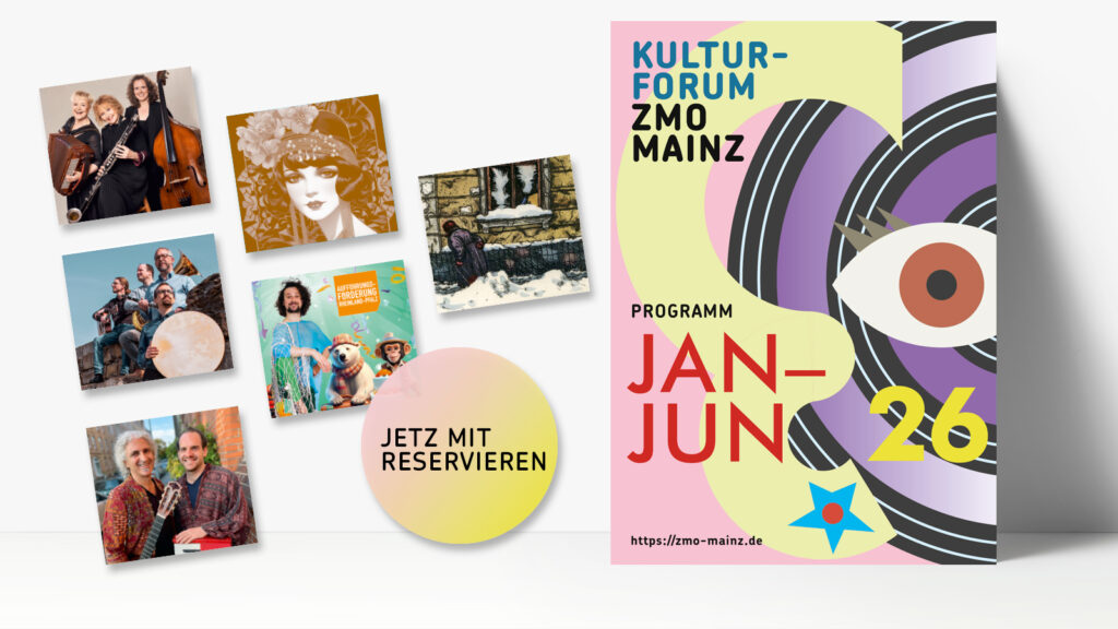 Das Programmheft Januar bis Juni 2026 liegt druckfrisch in den ZMO-Ladengeschäften und in unserem Vereinsgebäude zum Mitnehmen bereit. Gerne schauen Sie auch auf unserer Webseite unter der Rubrik Kultur in den Kalender. Dort finden Sie alle Informationen zu den Veranstaltungen online.