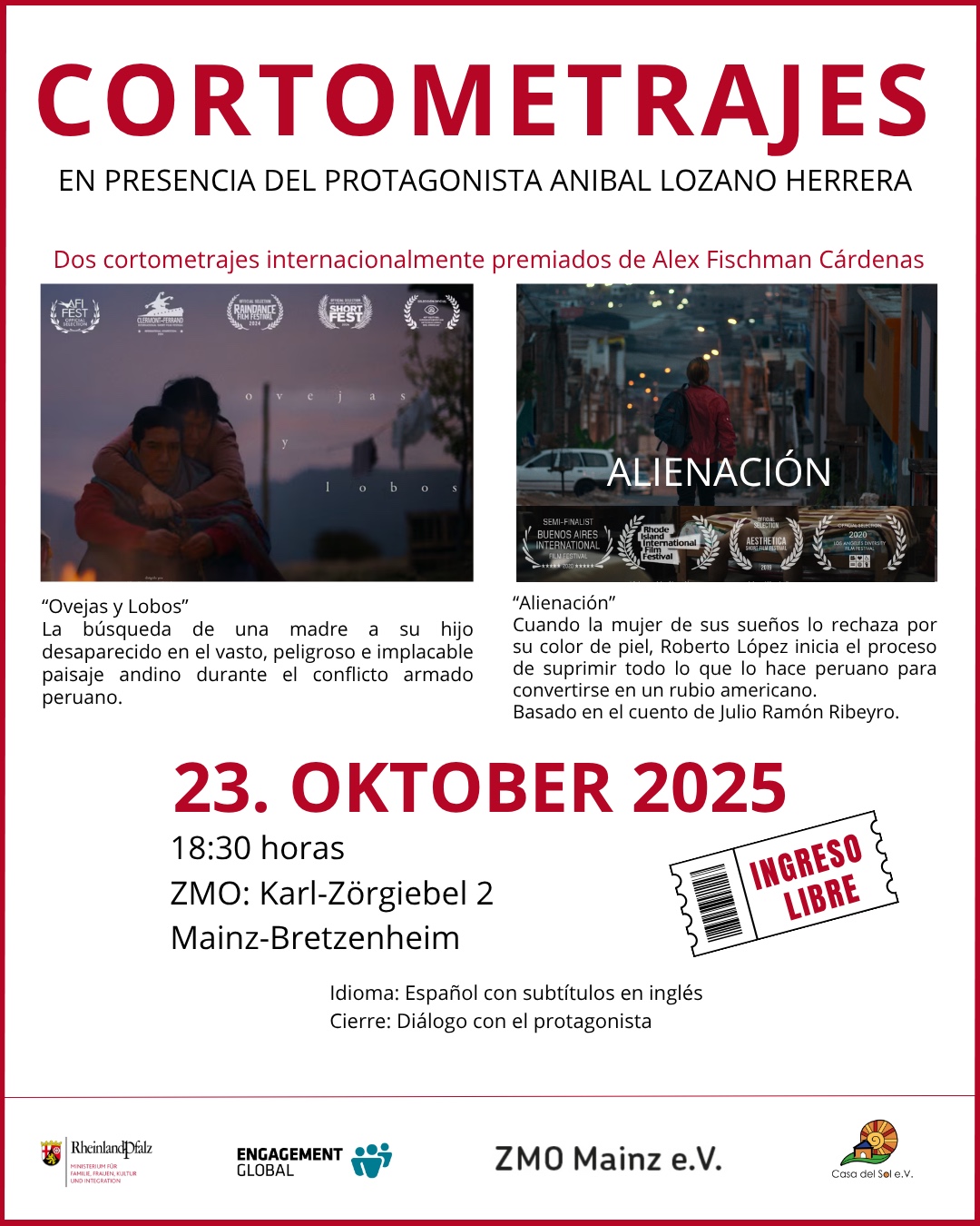 Zusammen mit Casa del Sol e.V. werden zwei Kurzfilme des Regisseurs Alex Fischman Cárdenas im Originalton mit englischen Untertiteln gezeigt.